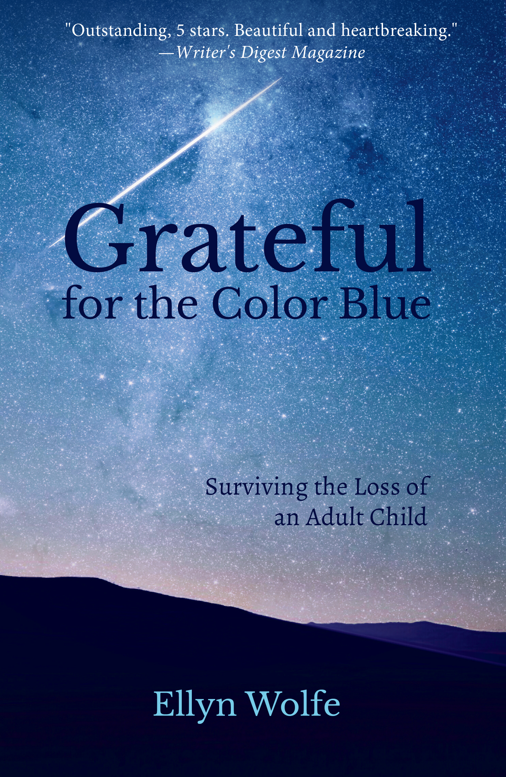 In Grateful for the Color Blue, Ellyn Wolfe tells of her odyssey through Hell and back; from her son's diagnosis through her struggle to reenter life following his death, to a fulfilling new life.